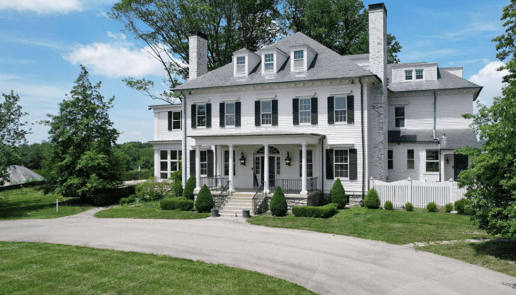 This stunning pre-Civil War white beautiful mansion sits high on a hill, nestled among old oaks and overlooking a breathtaking bend of the Ohio River. Built in 1858 and recently renovated, the home boasts 9,261 square feet of living space spread over four floors including a walk-out lower level, with 6 bedrooms, 4 full baths, and 3 half baths, plus 8 fireplaces and a 3-car garage, and an elevator!